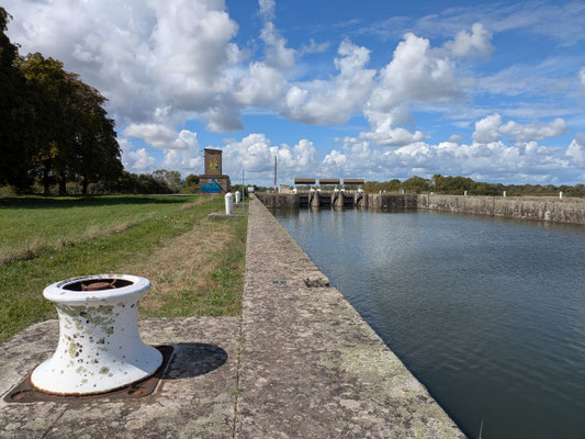 Le niveau élevé du canal de Haute Perche nous oblige à quelques contorsions pour le passage de la passerelle : attention à la tête!
