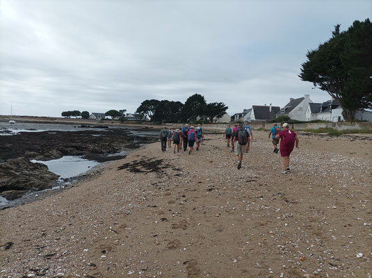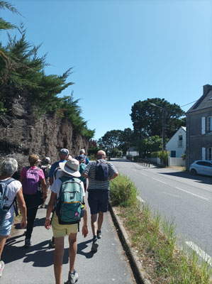 D'un bon pas, nos randonneurs affrontent le vent pour boucler le parcours.
